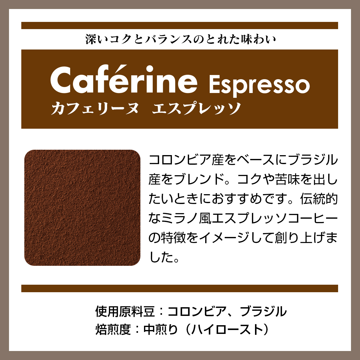 コロンビア産、ブラジル産をブレンド。