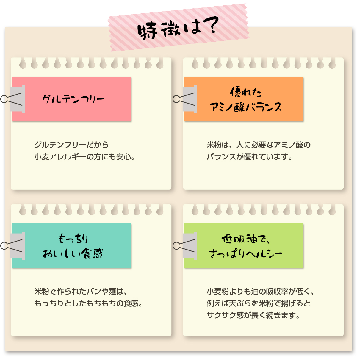 国産うるち米 100%使用、グルテンフリー